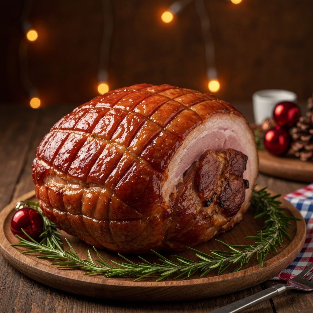 Traditional Finnish glazed ham, slow-cooked to perfection. Classic joulupöytä centerpiece.